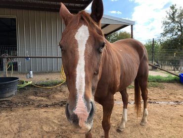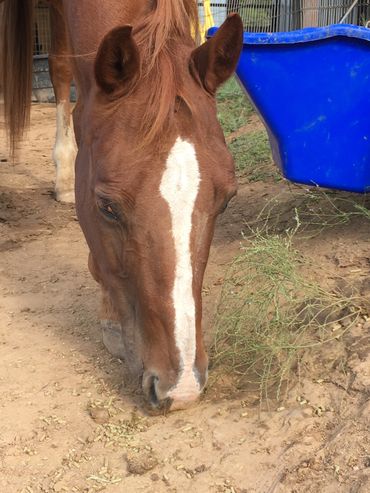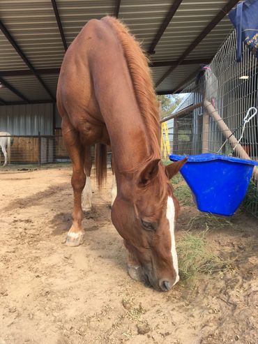 Smoothie was sent to the sale barn and saved, and then he had to be saved from a rescue who sent him to be euthanized. He's safe now and enjoying every minute - he loves feeding time!